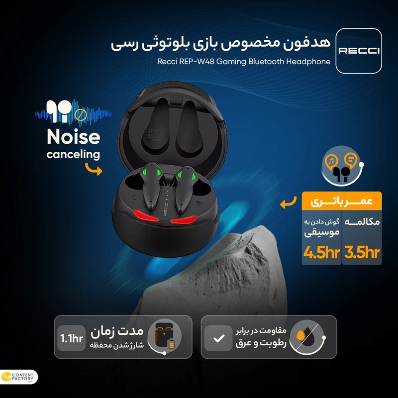 هدفون مخصوص بازی بلوتوثی رسی مدل REP-W48 از محصولات پرطرفدار گیمینگ است که با توجه به ویژگیها و حتی طراحی ظاهری بسیار جذاب خود، به راحتی میتواند نظر مثبت خریداران و کاربرانش را به خود جلب کند. این هدفون بلوتوثی با ارائهی زمان تاخیر بسیار پایین، میتواند تجربهای جذاب و همچنین دقیق از انجام بازیهای ویدیویی را ارائه کند. همچنین، قابلیت انتخاب حالت بین بازی و موسیقی یکی از ویژگیهای قابل تامل این محصول است که ارزش خرید آن را دو چندان میکند. برای این هدفون قطر درایور 13 میلیمتری در نظر گرفته شده است تا صدای واضحتر و قدرتمندتری تولید و پخش شود و در نتیجه تجربهی شنیداری جذابتری را فراهم کند. از جمله ویژگیهای مهم دیگر این هدفون میتوان به شارژدهی تا 3.5 ساعت در حالت مکالمه، تا 4.5 ساعت در حالت پخش موسیقی و شارژدهی مجموع تا 30 ساعت به کمک محفظه شارژر اشاره کرد.