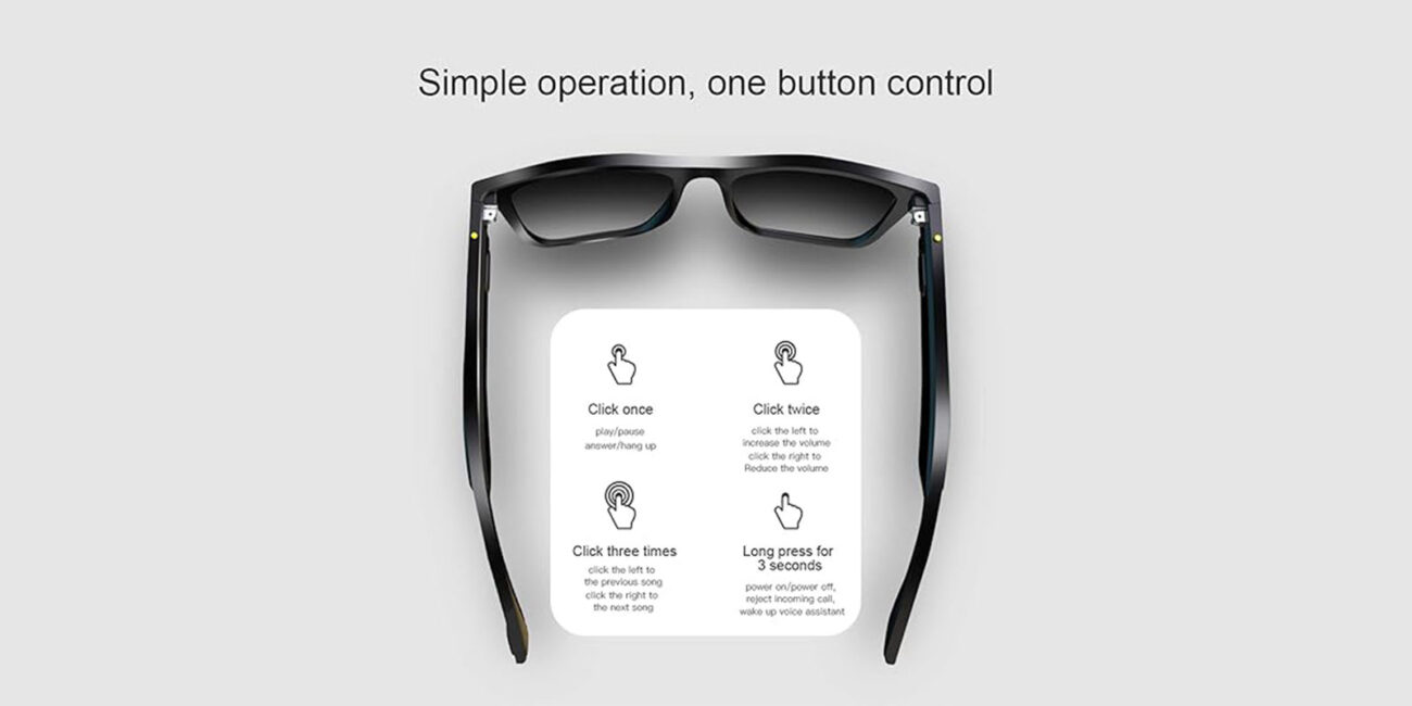 - کنترل پخش موسیقی: با استفاده از ضربه های ساده روی دسته های عینک، میتوانید موسیقی خود را کنترل کنید، از جمله پخش، توقف یا رد کردن آهنگ ها.